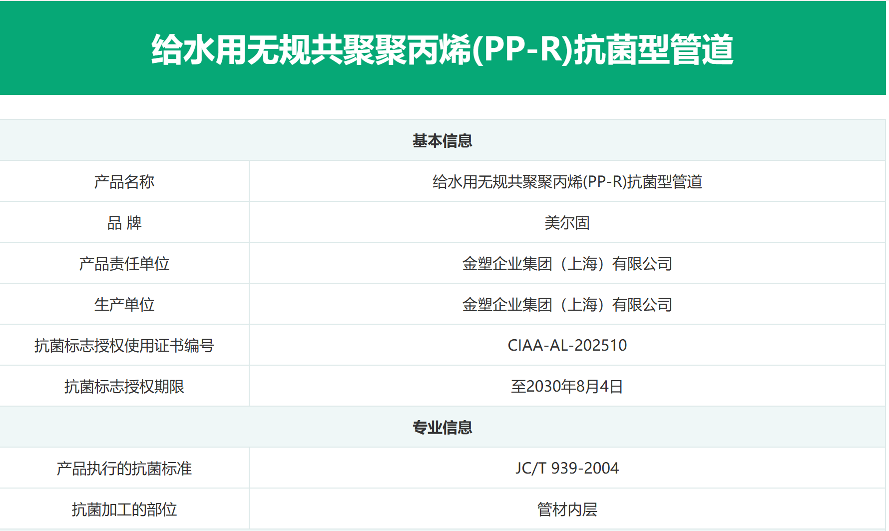 抗菌PP-R管性能引領業界追求,金塑企業集團(上海)有限公司獲得抗菌標志使用授權